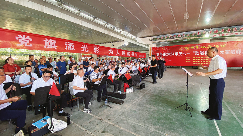 △6月29日,市文化館組織開展慶“七一”歌唱祖國群眾歌詠活動,共慶黨的生日。 (本報記者 李 敏 攝)