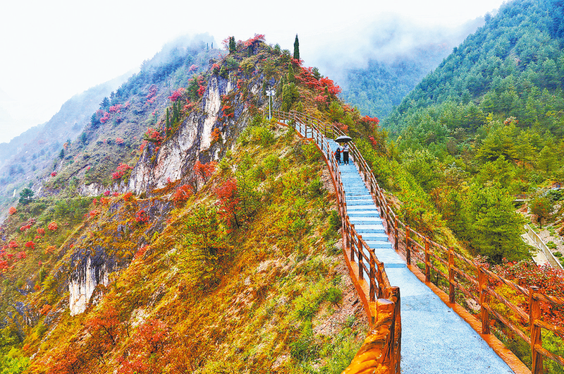 柞水溶洞古道嶺宛如紅色的海洋