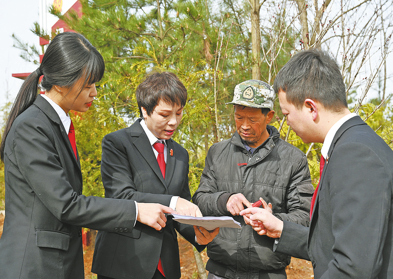 除做好案件審理工作外,周夢琳(左二)還擠出時間向群眾宣傳秦嶺生態保護的意義。 (資料圖片)