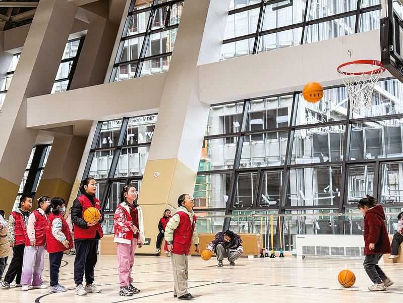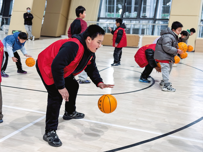 “我們先沿著籃球場(chǎng)跑5圈,叫醒身體里的運(yùn)動(dòng)細(xì)胞。”上午9時(shí)許,教練洪亮的聲音在館內(nèi)回蕩,小記者們應(yīng)聲而動(dòng)。熱身跑之后,教練教授了頭部運(yùn)動(dòng)、腹背運(yùn)動(dòng)、體轉(zhuǎn)運(yùn)動(dòng)、正側(cè)壓腿以及腕踝關(guān)節(jié)運(yùn)動(dòng)等球操訓(xùn)練,只見小記者們個(gè)個(gè)神情專注,努力跟上節(jié)奏。隨后的“耍球游戲”迅速點(diǎn)燃了大家的熱情。現(xiàn)場(chǎng),教練示范了雙手拋接球、環(huán)繞交接球和原地兩手交換推滾球等基礎(chǔ)技巧。看著籃球在教練手中運(yùn)轉(zhuǎn)自如,小記者們躍躍欲試。練習(xí)中,場(chǎng)館內(nèi)的氣氛變得格外活躍。“本以為打籃球只是學(xué)習(xí)投籃,沒想到還可以這么玩!”幾名小記者興奮地說。
