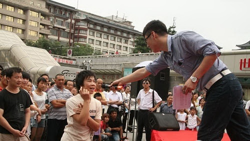 8月13日下午,在西安鐘樓金花廣場,牛背梁國家森林公園上演尋找開園“金鑰匙”宣傳巡演活動。一位叫楊麗的女孩通過層層沖關,幸運地成為首位拿到“金鑰匙”的游客,獲得在一年時間內(nèi)免費游牛背梁景區(qū)的通票。