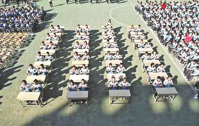 為貫徹落實“雙減”政策,切實做好課后服務工作,我市各地各學校積極開展體育、文化等方面的特色文體活動,促進學生全面發展。圖為11月25日,丹鳳縣初級中學舉行課桌舞比賽活動,展示學生團結拼搏、奮發向上的精神面貌。 (高 鴻 攝)