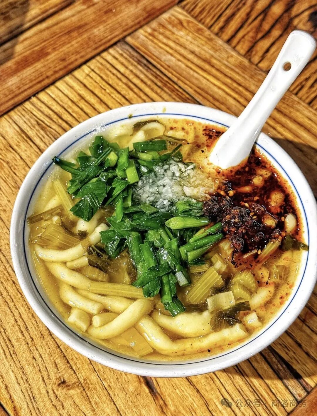 - 商州大燴菜:商洛人餐桌上的“全家福”,五花肉、丸子、豆腐、粉條在土灶里慢燉三小時,咸鮮醇厚,一口下去渾身暖烘烘,完美適配觀賽日的微涼天氣。 - 洛南攪團:玉米面慢攪而成的軟糯美味,介于涼粉和年糕之間的奇妙口感,澆上發酵酸水漿湯,撒上韭菜末和油潑辣子,酸辣開胃,解膩又頂飽。
