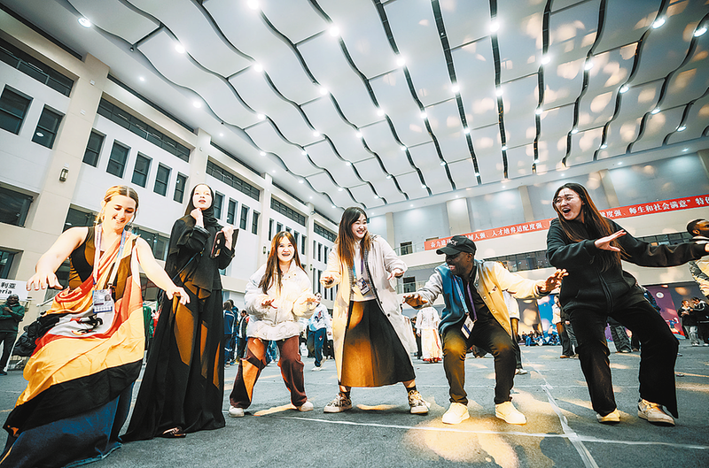 ⑦12月9日,“國家之夜”活動中,各國運動員與現場的工作人員、學生等一起跳舞互動。