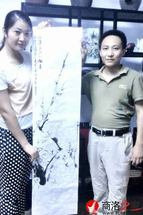 我送給病患者一副由商洛市青年畫家陳明玉創作的《傲雪梅花圖》