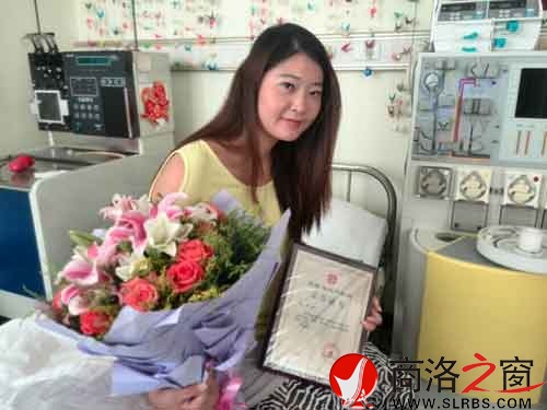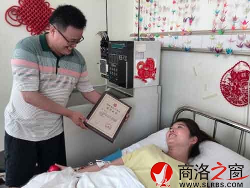 中華骨髓庫北京總庫的工作人員趙維宏和一名志愿者為我送來鮮花和榮譽證書