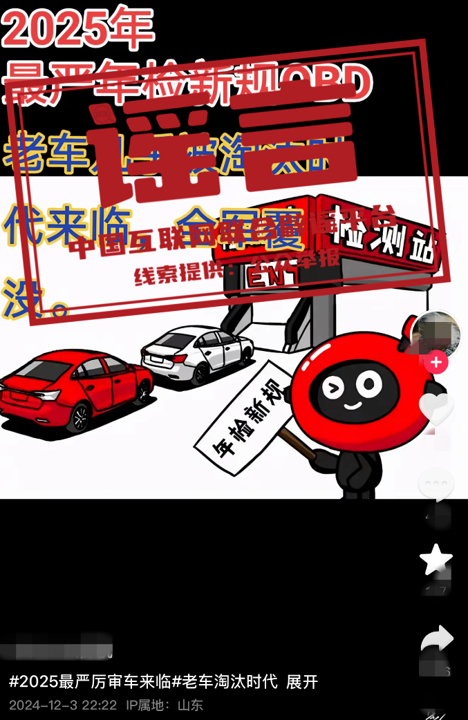 真相:近日,多個自媒體賬號發布消息,宣稱“史上最嚴車檢來了”“車檢年限變化”“燃油車年檢增加OBD檢測”等。中央廣電總臺中國之聲記者多方求證了解到,上述說法均為不實消息,目前各地車檢并沒有新變化
