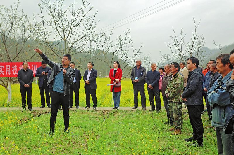 眼下正值春耕生產的關鍵時期,隨處可見農民朋友忙碌的身影。4月13日,記者來到商州區陳塬街辦上河村核桃基地,舉目四望,滿坡的核桃樹排列整齊,把山頭點綴得生機盎然。在一棵核桃樹下,10多名村民圍著一名戴著眼鏡的瘦高男子,仔細地聽他講解核桃科管要點。這名文質彬彬的青年叫胡刁,村民稱他“科管專家”。