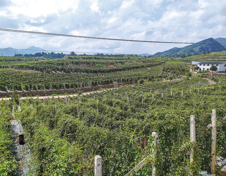 2019年,張喜盈到保安鎮(zhèn)黑潭村考察發(fā)現(xiàn),村后的山坡地坡度平緩、集中連片,適宜于發(fā)展種植業(yè),于是經(jīng)過和村上多次商談,他于當年10月承包黑潭村后嶺山坡地1200多畝,確定搞五味子種植。為此,他先后到東北考察學習五味子的種植管理、參加農(nóng)業(yè)種植技術培訓,自己還買來相關書籍在家里自學。很快,他便掌握了五味子的田間管理方法,從一個不懂農(nóng)業(yè)的生手到專業(yè)生態(tài)農(nóng)場主,張喜盈也走過彎路,受過挫折,但他沒有放棄。