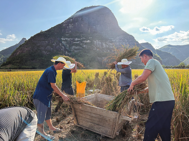 皮膚曬得黝黑的村民馬輝財憨厚地笑著,露出一口白牙。他已經(jīng)64歲了,通過在水稻基地務(wù)工,實現(xiàn)了在家門口就業(yè)。“我家離這里不遠,從水稻基地建成起就在這里干活了。最近的工作主要是對水稻進行收割和晾曬,工資按天結(jié)算,一天能掙100元。”
