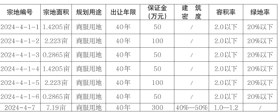 1-6號宗地位于洛南縣城關街道王灘村,宗地面積5240平方米(7.86畝),均為洛盧高速項目配套設施用地,整體出讓,其中1號宗地為西區服務區用地,面積947平方米(1.4205畝),2號宗地為西區加油加氣站用地,面積1482平方米(2.223畝)3號宗地為西區維修間用地,面積191平方米(0.2865畝),4號宗地為東區服務區用地,面積947平方米(1.4205畝),5號宗地為東區加油加氣站用地,面積1482平方米(2.223畝),6號宗地為東區維修間用地,面積191平方米(0.2865畝);7號宗地位于城關街道柏槐社區(原看守所用地),宗地面積4793平方米(7.19畝)。