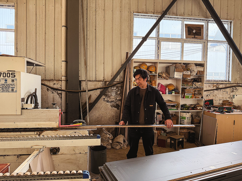 廠房的機器旁,郭肖銳正在加工板材。