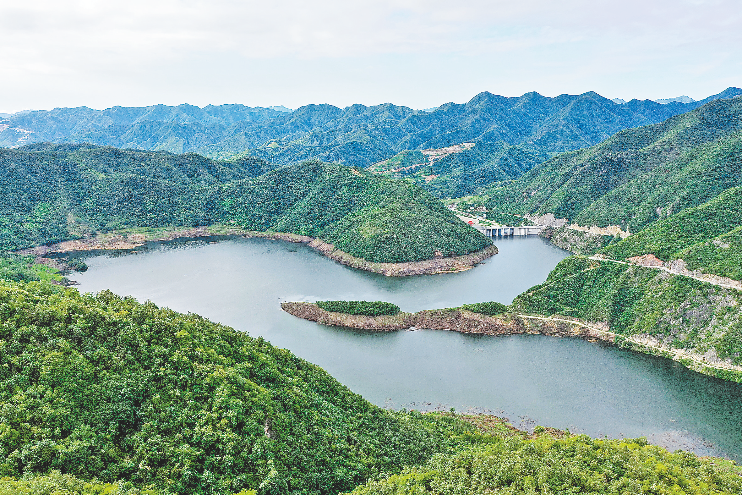 太陽升起,從距耀嶺河村不遠的湘河鎮蓮花臺村蓮花臺水庫庫區乘船一路而下,青山綠樹倒映在平靜的碧色湖面上,形成了絕美的山水畫廊。兩邊連綿起伏的青山時而高聳,時而低矮,時而陡峭,時而平坦;湖面在青山的包圍之下,時而狹窄,時而寬闊。陽光越來越耀眼,湖面像被撒下了無數顆星星,波光粼粼,如夢如幻。