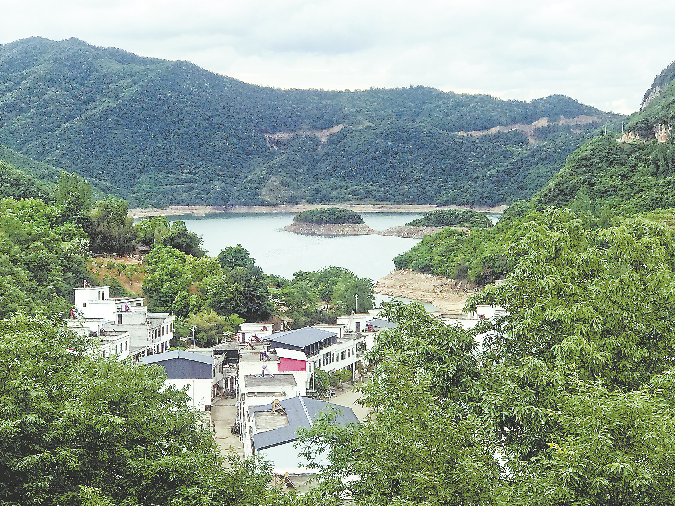 耀嶺河村一角,從村后的桃花島上可以看見蓮花臺村的“龍眼”。
