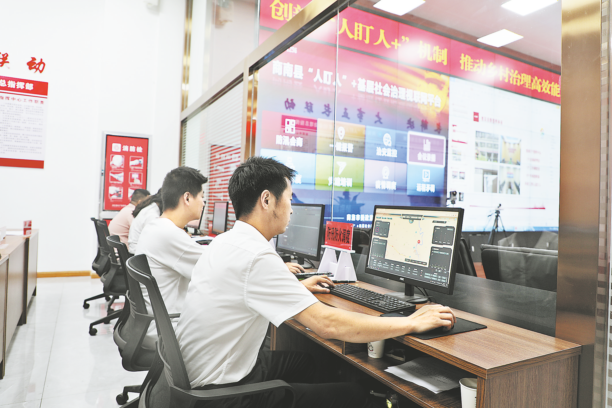 創新鄉村社會治理。該縣探索推行“人盯人+”社會治理機制,在縣城南大街社區建成了“人盯人+”基層社會治理信息平臺,運用視聯網,將縣上指揮部與全縣10個鎮辦、126個村社區連接起來,實現了多個治理目標。其中,防返貧監測方面,借助手機客戶端視頻連線,調度指導村級網格員入戶查驗農戶收入、“兩不愁三保障”和飲水安全、突發事故等返貧致貧風險,按程序識別納入監測對象,跟蹤開展幫扶工作,確保不出現返貧致貧現象;治安聯防方面,接入全縣視頻監控系統,做到了全域覆蓋、全網共享、全時可用、全程監控,能夠做好特殊人群、關鍵部位監測,發現上報社會治安隱患,及時防范并精準打擊。運用這個信息平臺,還可以遠程調解群眾的矛盾糾紛,實時掌握全縣地質災害點監測員的監測情況,等等。