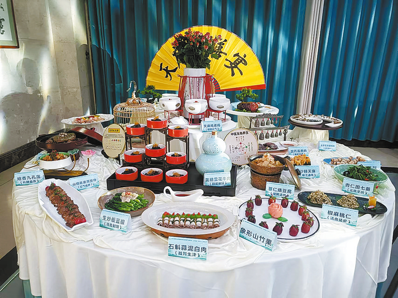 商南縣攜手多家餐飲企業(yè)與中國藥膳研究會合作,結(jié)合商南茶、冷泉魚、梅花鹿等資源,研發(fā)推出了以綠茶烏梅番茄脯、天麻白茶鱸魚、紅茶老酒豬肝為代表的“金絲茶宴”,以黑芝麻薄荷汁撈鮭魚、“眾里鱘她”、虹鱒三吃為代表的“冷泉魚宴”,以黨參水晶鹿肉、玉竹葛根鹿肉、黃精醬香鹿肉為代表的“珍饈鹿宴”三個(gè)特色主題藥膳菜品。