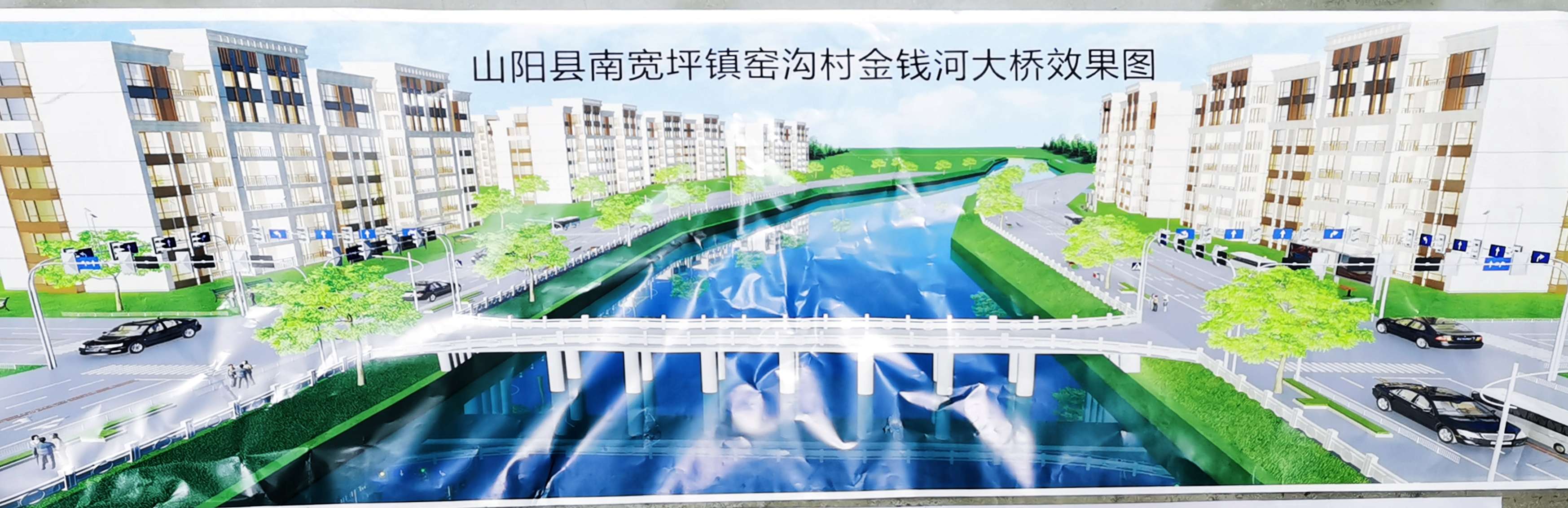 山陽縣南寬坪鎮窯溝口村金錢河大橋建設工程位于南寬坪鎮窯溝口村,橋梁起點順接規劃南寬坪鎮廣場路南段,與G242南寬坪過境段形成“十字”平交,跨越金錢河,終點與窯溝口村通村水泥路平交,橋梁全長152延米,橋梁寬度凈7.5米+2×1.5米人行道系。該項目于2019年9月開工建設,預計2020年6月下旬通車。