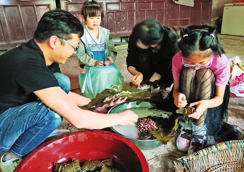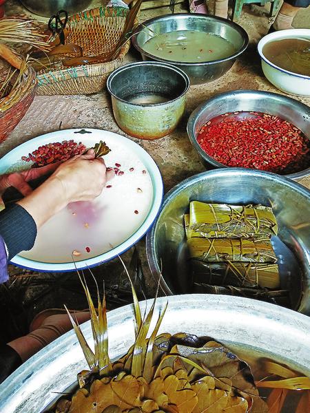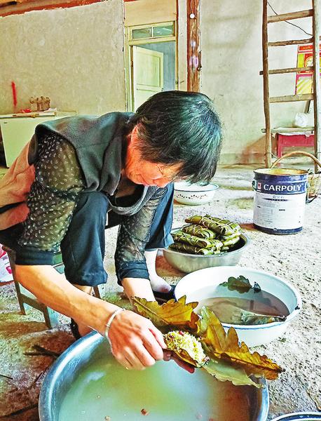 張芳棉家住商州區沙河子鎮,由于三個兒女在城區工作生活,因此這些年她一直都在城里幫忙照看孫子、孫女,很少回老家。但每年端午節前,張芳棉都會提前到菜場去買好槲葉、蘆葦葉、小米、黃米、糯米、大棗、四季豆等材料,提前一天回到老家煮好槲葉、蘆葦葉、馬蓮,泡好米、四季豆。在端午節前那個周末,這一家人不管多忙,都會聚在一起包粽子。“自己包的粽子,好吃還放心,比在外面買的好多了。”張芳棉高興地說,“過節了大家都回來,多熱鬧呀。”