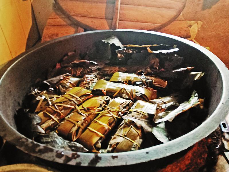 全家人忙了3個多小時,所有的粽子終于包好了。下午4點鐘,吃過飯后,粽子放進了大鐵鍋,灶下柴火燃起,“粽子要過夜才香,明天早上就可以撈出來了。”張芳棉高興地說,“明天就可以吃了。”