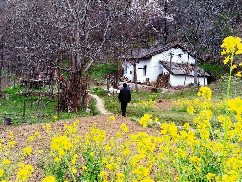 放眼西窯村,山巒層層疊疊,盤繞在山間的通村水泥路如銀鏈環(huán)繞,連接著山里人家。村民在山坡地里采挖菊芋、種植中藥材,空氣里散發(fā)著春天的泥土氣息,金黃的油菜花和連翹花相映生輝,雪白的棠梨花和櫻桃花似一團(tuán)團(tuán)白云,柳絲氤氳著一片又一片綠霧,炊煙裊裊,令人賞心悅目。