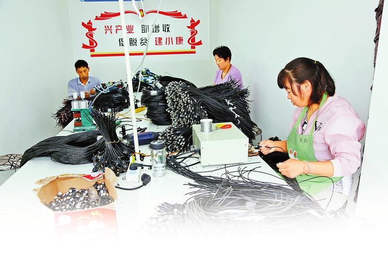 “目前受場地限制,我們分了3個(gè)房間來做,工人也招收的比較少。等明年新廠房建成,能夠解決六七十人進(jìn)廠工作。”李毓宏指著鎮(zhèn)政府旁邊的一塊空地說。現(xiàn)在,李毓宏每個(gè)月有3000元的收入,也能照顧家里父母、孩子,真正實(shí)現(xiàn)了樓上居住、樓下上班。