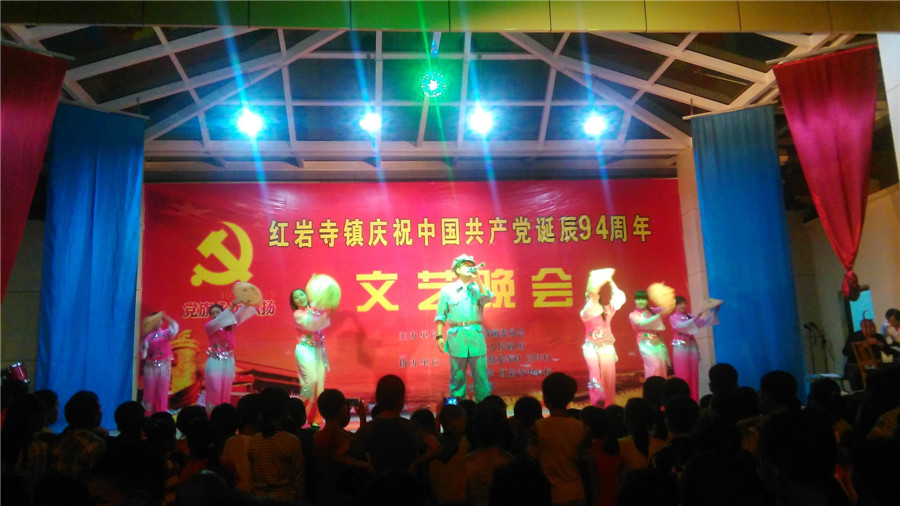 今年是建黨94周年,也是踐行“三嚴(yán)三實(shí)”專題教育活動(dòng)年,紅巖寺鎮(zhèn)黨委政府為了熱烈慶祝黨的生日,深入推進(jìn)“三嚴(yán)三實(shí)”專題教育活動(dòng),充分展現(xiàn)紅巖新面貌,由鎮(zhèn)政府、中學(xué)、中心校、中心幼兒園、紅巖藝術(shù)社、紅巖社區(qū)、盤龍寺村、閆坪村、張坪村等單位組成文藝演出隊(duì),經(jīng)過近一個(gè)月來每晚兩小時(shí)的排練以及與各單位的座談溝通等前期籌備工作,共推出32個(gè)節(jié)目。