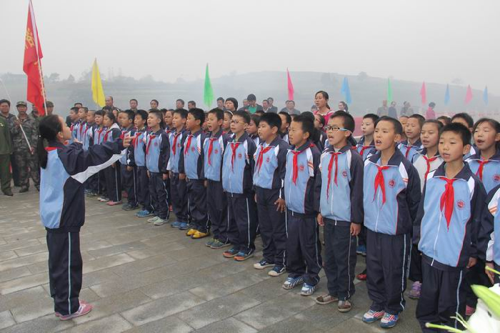 在轟鳴的炮聲中,縣長(zhǎng)王宇鵬等領(lǐng)導(dǎo)為烈士紀(jì)念碑揭幕,副縣長(zhǎng)彭立向烈士紀(jì)念碑行鞠躬禮并宣布烈士公祭儀式開始。禮兵就位,全場(chǎng)奏唱《中華人民共和國(guó)國(guó)歌》,隨后西街小學(xué)少先隊(duì)員獻(xiàn)唱《我們是共產(chǎn)主義接班人》,歌聲激昂,響徹天宇。隨后,伴隨著激昂深情的旋律,武警官兵手抬花籃,禮步緩緩走向烈士紀(jì)念碑,將花籃擺放在烈士紀(jì)念碑基座前,縣長(zhǎng)王宇鵬整理花籃緞帶,全體公祭人員向烈士紀(jì)念碑行三鞠躬禮。最后,領(lǐng)導(dǎo)班子帶領(lǐng)各界人士瞻仰烈士墓并敬獻(xiàn)鮮花。
