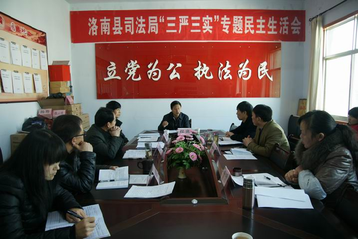12月31日,洛南縣司法局領導班子召開“三嚴三實”專題民主生活會,局班子成員、局機關全體干部及局屬單位負責人參加,縣委常委、政法委書記程虎和縣委政法委副書記張勤學到會指導。