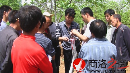 {圖片新聞:洛南縣柏峪寺鎮在“三問三解”活動中,積極聘請市、核桃專家深入田間地頭解民困、解民憂、解民怨:手幫手教給群眾核桃高接換優知識,完成400余畝1150株核桃嫁接工作。圖為核桃專家在關帝廟村現場示范一角。
