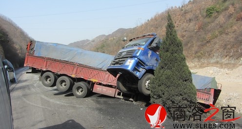 本網訊 (記者 王濤)三一二國道丹鳳縣鐵峪鋪段由于彎急坡陡、岔路較多,經常發生交通事故。三月四日,多輛大貨車在此又發生連撞。記者提醒過往司機行至此處減速慢行。