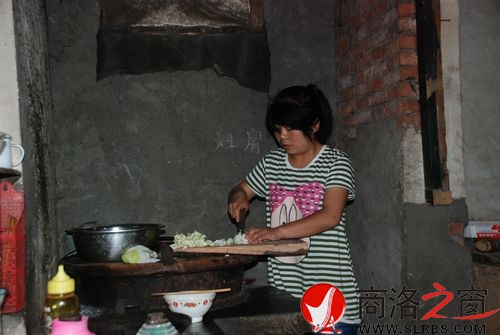 6月22日下午,天下著小雨,筆者來到了位于洛南縣永豐鎮楊村一組的張妮家。我們看到祖孫二人住在一座有些陳舊的三間土房內,院落雖然有些破舊,屋內也沒有一件像樣的家具,但卻打掃的干干凈凈,室內物品也擺放的井井有條,鍋臺簡單潔凈。在東側一間光線有點昏暗的房間土炕上,我們看到,張妮正側坐在土炕邊沿給臥病在床的奶奶霍琴娃一勺一勺地喂著米粥,還不時地用毛巾幫奶奶擦著嘴角。