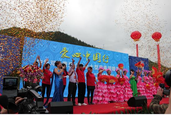 “愛心中國行”在洛峪村站捐助人民幣一千多萬元,其中除20輛東風標致轎車和30臺電腦等實物外,其余全部以現金方式現場捐助。其資助了山陽縣5個村建新農村項目,還向山陽縣銀花鎮中學和山陽縣兩嶺九年制學校各捐款10萬元,幫助鄉村孩子完成學業。其他受捐對象為來自全國各地的愛心使者、愛心志愿者、有特殊貢獻的愛心大使、特別貧困家庭和殘疾人。