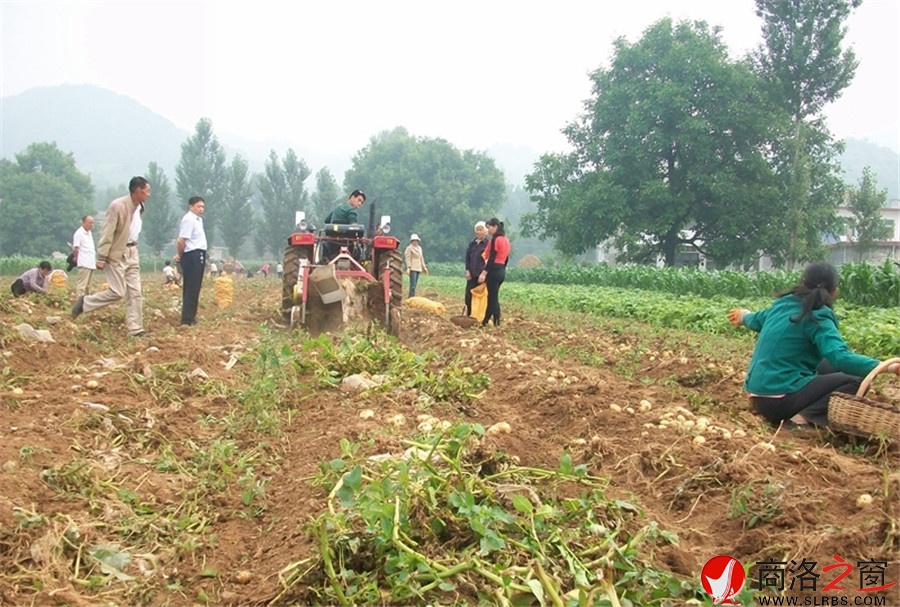 商洛之窗訊(郭夏季 樊菊榮 姚世年)一場連陰雨過后,天氣逐漸放晴,洛南縣今年種植的15萬余畝馬鈴薯陸續開始收獲。在秦嶺沿線的洛南縣馬鈴薯產業大鎮洛源、保安、麻坪、石門等鎮的田地里,到處一派喜氣洋洋、忙忙碌碌的豐收場面。圖為寺坡鎮水磨村薯農在縣農機中心農機人員的精心指導下,積極開展馬鈴薯機械化收獲。