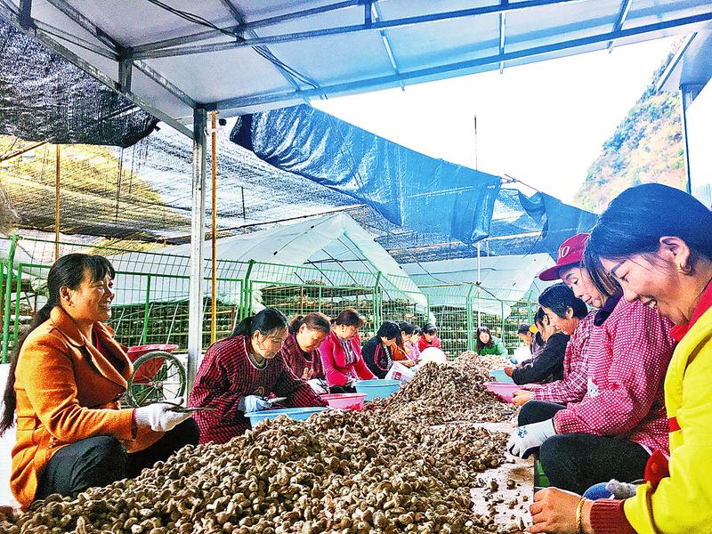前灣村食用菌產(chǎn)業(yè)基地建在五組響馬溝口,村里采用“支部+基地+貧困戶”模式,建起這個(gè)產(chǎn)業(yè)基地,今年村上一次購(gòu)買香菇菌棒11萬(wàn)袋,連帶20戶弱勞動(dòng)能力貧困戶通過(guò)在基地務(wù)工、入股等方式,實(shí)現(xiàn)穩(wěn)定就業(yè)、分紅增收,村上還派1名副支書(shū)專門負(fù)責(zé)扶貧工廠日常管理和技術(shù)指導(dǎo)工作。目前,53個(gè)黑色的大棚整齊排列在干佑河邊,配套的3間庫(kù)房、1座冷庫(kù)、10個(gè)烘干爐一應(yīng)俱全,解決了香菇存放、保鮮、加工等一系列問(wèn)題。村支書(shū)劉厚成指著成袋的香菇說(shuō):“這是今年采摘的第一茬香菇,產(chǎn)值預(yù)計(jì)可達(dá)20萬(wàn)元,之后長(zhǎng)出的花菇成色更好。”據(jù)他介紹,村民剪下的香菇根部可用作烘干爐的燃料,香菇把兒可以制成香菇醬,來(lái)不及烘干的濕香菇儲(chǔ)存在冷庫(kù),保證香菇在價(jià)格合適時(shí)售出。“好貨不愁賣,早有人開(kāi)車來(lái)爭(zhēng)著收購(gòu)。”在基地務(wù)工的村民言語(yǔ)間充滿自豪。目前進(jìn)入生產(chǎn)高峰期的產(chǎn)業(yè)基地每天用工量50人左右,有35戶貧困戶家庭通過(guò)在產(chǎn)業(yè)園務(wù)工,人均增收2000元,解決了部分弱勞力家庭缺少短期增收項(xiàng)目、工資性收入空白的問(wèn)題。