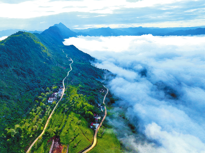 初秋時節,鎮安縣永樂街道鞍山村在晨光中出現云海景觀,當地獨特的地理環境形成的云海與煙田、民居、公路互相映襯、相得益彰,形成一幅生態和諧、美不勝收的田園畫卷,也讓鞍山成為遠近聞名的美麗鄉村。(本報通訊員 楊建東 攝)