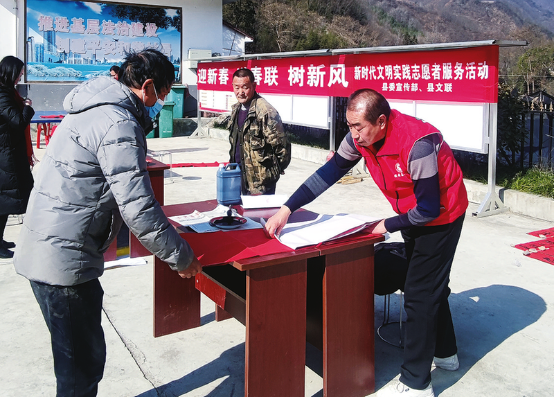 2023年元旦,志愿者走進回龍鎮萬壽村義寫春聯。